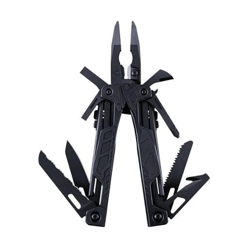 - 16 Integrated Tools – Includes needlenose pliers, wire cutters, a 420HC stainless steel blade, a saw, strap cutter, oxygen tank wrench, and more.