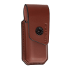 This leather belt sheath features the Leatherman name and logo also with snap closure.