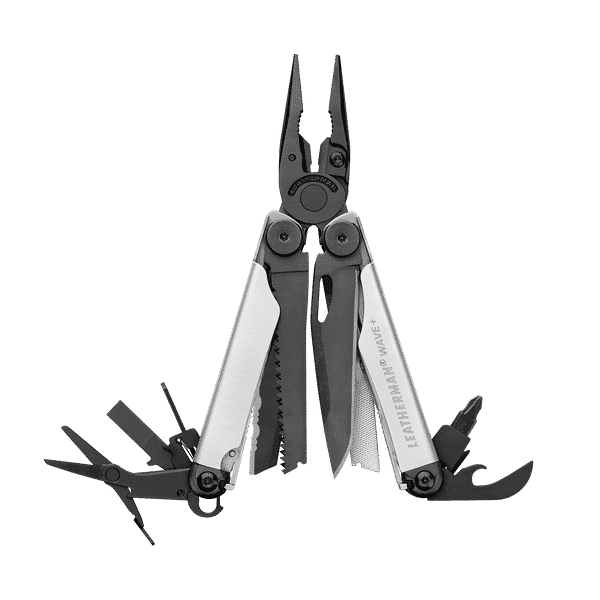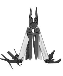 The Leatherman Wave® + multi-tool is hands down our most popular model, made famous by its outside-accessible blades that can be deployed with just one hand. When we redesigned it in 2004, we gave the Wave larger knives, stronger pliers, longer wire cutters, and all-locking blades. Perfect for any job, adventure, or everyday task, the Wave multi-tool is an international best-seller. Available now in a limited-edition, black and stainless steel finish.