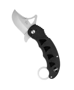 There aren’t many knives that really stand out, but the Snaggletooth is one very unique folder. It was designed by Morgan Thomas and incorporates several important features. First, and foremost, this is a tactical folding knife, but it also acts as a control and command force tool. In addition, it has a push-button opening finger ring for use as a karambit.