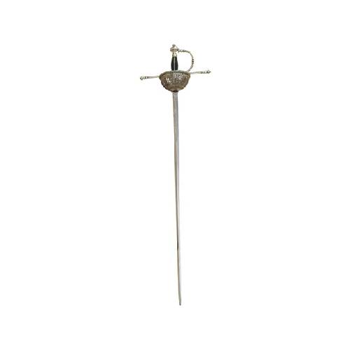 The Spanish Tizona Cup Hilt Rapier Sword by Marto of Toledo Spain is a reproduction replica of the very well known sword from the 16th century, valued in all of Europe, and used by the brave Captain of the Flanders Corps and the courageous Conquerors of America. The Spanish style rapier sword stands out due to its half cup shape hilt that could be finished in different ways (open work, engraved, etched, etc) as well as to its graceful and light blade carefully tempered. Original versions of this historically accurate replica of the Spanish Tizona Cup Hilt Rapier Sword can be admired in most of the important museums of the world.