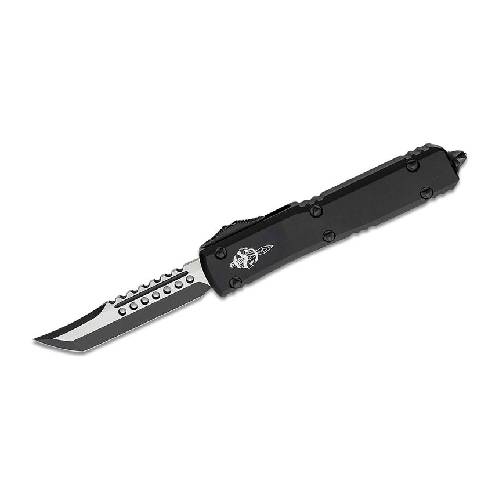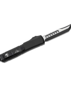 The MICROTECH ULTRATECH HELLHOUND TWO-TONE SIGNATURE 119-1TS is the pinnacle of Microtech’s out-the-front (OTF) knife line, maintaining its legacy as the standard for all OTF knives. Known for its dual-action automatic opening and closing, this Ultratech model features a unique two-tone Hellhound tanto blade, making it stand out as a functional yet striking tool. The tri-grip thumb slide and a rounded, functional glass breaker ensure ease of use and durability.