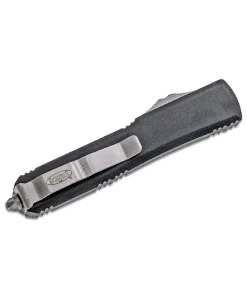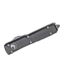 Microtech 122-1 Ultratech Auto OTF 3.46″ Black Plain Double Edge Dagger Blade, Black Aluminum Handle