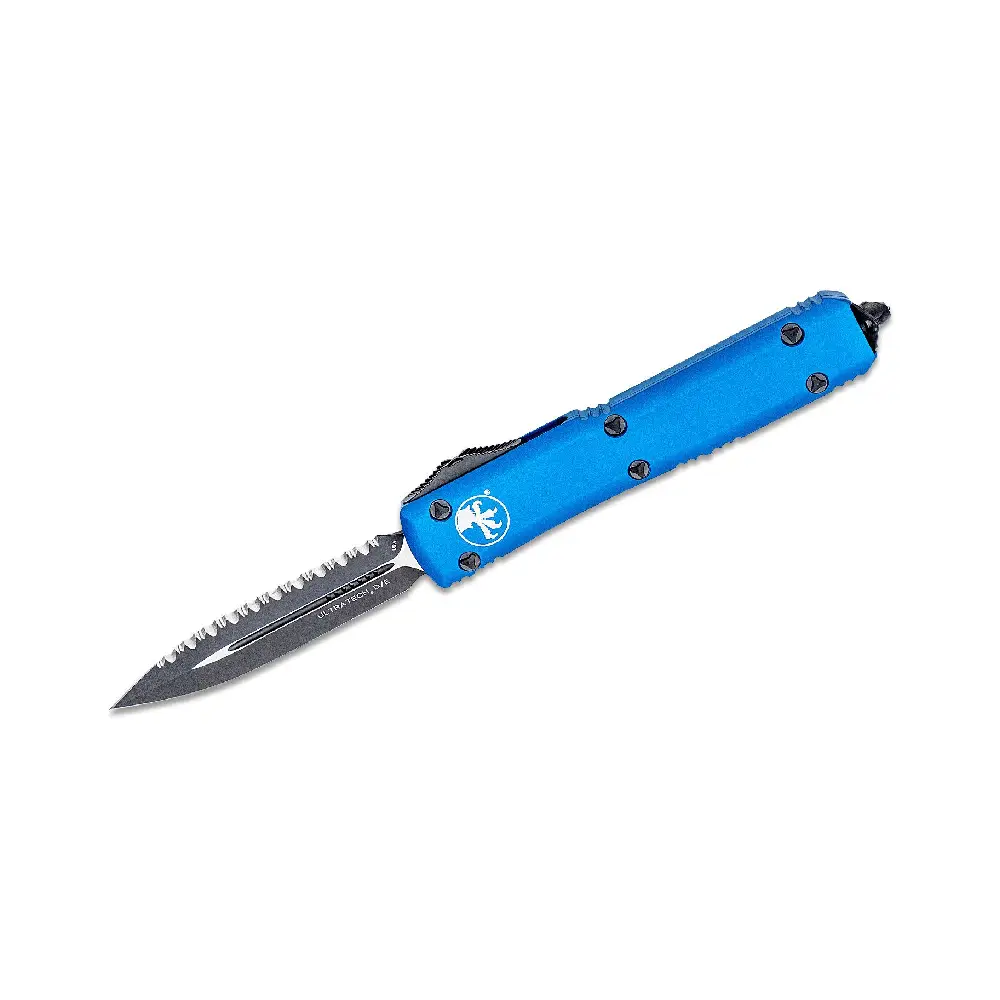 The Ultratech, will forever set the standard for all out-the-front knives. Ultratech is Microtech’s original dual action out-the-front knife, and has been the foundation of their entire OTF line. Over the years, it has gone through several modifications, each time becoming more efficient and reliable. This version has the improved contoured handle with texturing thumb slide for more positive purchase. The Ultratech’s spring remains in an “at rest” position at all times except when deployed. This ensures that the compressed spring will not become fatigued, assuring users that when the knife is fired, it will operate effectively. Ultratech can take many different forms; it can be topped with a standard machined aluminum top or a piece of carbon fiber. The Ultratech’s light weight, one handed open and close action, slim shape, and scalpel sharp blade make it a one of a kind knife, only available through Microtech. This knife has proven time and again that it can withstand any obstacle. Only time will tell what the next step will be for the Ultratech series.