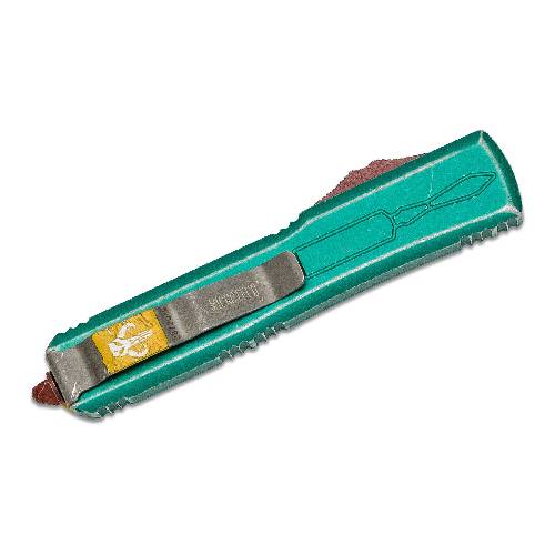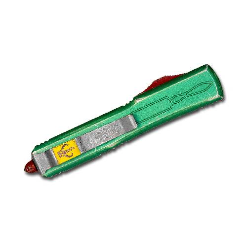 The Microtech Ultratech Bounty Hunter 123-12BH is a standout in the legendary Ultratech series, combining functionality with a design inspired by the iconic Boba Fett. Featuring a distinctive apocalyptic green handle, red hardware, and the Mythosaur logo on the pocket clip, this knife pays homage to the Star Wars universe while maintaining the high-performance standards of Microtech’s original dual-action out-the-front knives.