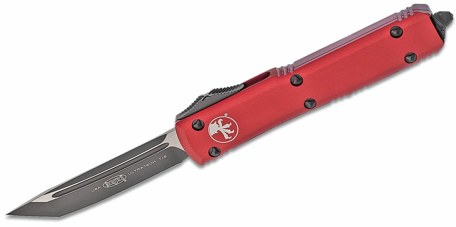 The MICROTECH 123-1RD T/E BLK is a high-performance out-the-front (OTF) automatic knife designed for precision, durability, and everyday carry. Featuring a tanto-style blade with a black finish, MICROTECH 123-1RD T/E BLK knife offers exceptional cutting power and strength. The red anodized aluminum handle provides a bold aesthetic with a comfortable, contoured grip.