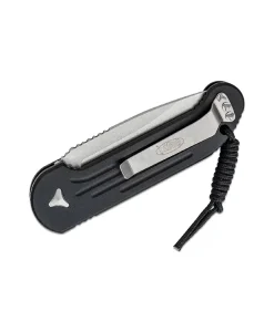 The 135-10AP LUDT’s blade has a crowned spine, thumb ramp jimping and a reinforced tip for maximum penetration effectiveness without compromising the tip. The stonewashed finish on the blade is extremely durable and the black handle makes this an ideal folder for EDC. All the hardware of this knife including the actuation button and pocket clip is stonewashed, just like the blade. The handle is made from milled aircraft-grade aluminum for strength and to keep the weight down. It’s ergonomic, lightning-fast and just an awesome all-around blade. This knife has been proven time and again, and we are very happy to have it back again. It includes a micro cord lanyard and tamper-proof screws.