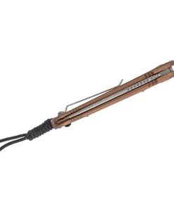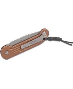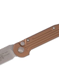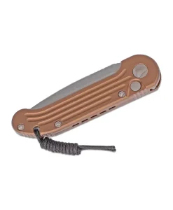The Microtech 135-10TA Ludu blade also has a crowned spine, thumb ramp jimping and a reinforced tip for maximum penetration effectiveness without compromising the tip. The stonewashed finish on the blade is extremely durable and the tan aluminum handle makes this an ideal folder for EDC. All the hardware of this knife including the actuation button and pocket clip is stonewashed, just like the blade. Moreover, the handle is made from milled aircraft-grade aluminum for strength and to keep the weight down. It’s ergonomic, lightning-fast and just an awesome all-around blade. This knife has been proven time and again, and we are very happy to have it back again. It also includes a micro cord lanyard and tamper-proof screws.