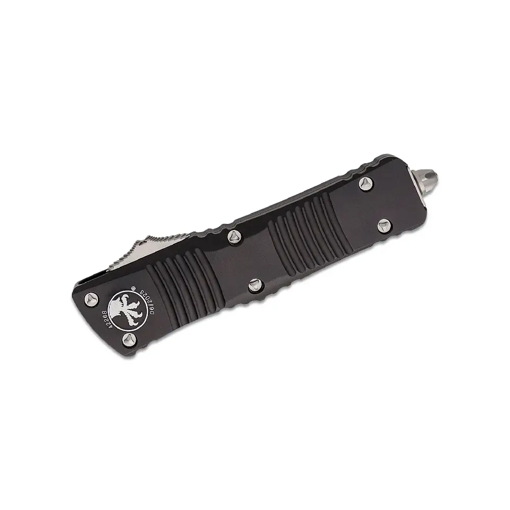 The word Troodon (TROH-o-don) was actually named after a bird-like dinosaur from the Campanian age. The literal translation in Greek is “wounding tooth” which represents the sharp and serrated nature of the Troodon’s dental structure. The Microtech 142-10 Combat troodon is 25% larger than the tradition Troodon model but still manages to boast a sleek slender handle that is ergonomic as it is functional. Each Microtech OTF knife has extremely sophisticated internal mechanisms which improve the overall operational functionality and reliability. This model features a black handle complete with standard bead blasted hardware and an integrated glass breaker function along with a dagger style blade in a stonewash finish. Made in the USA.