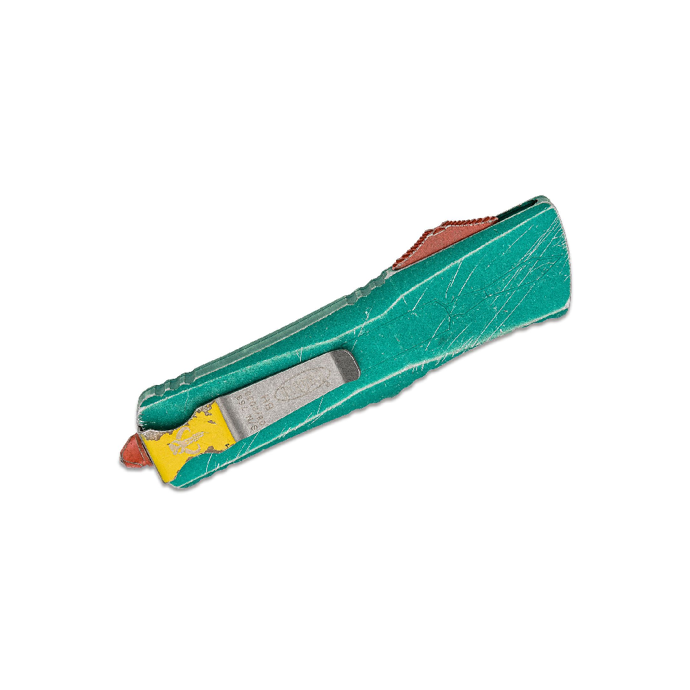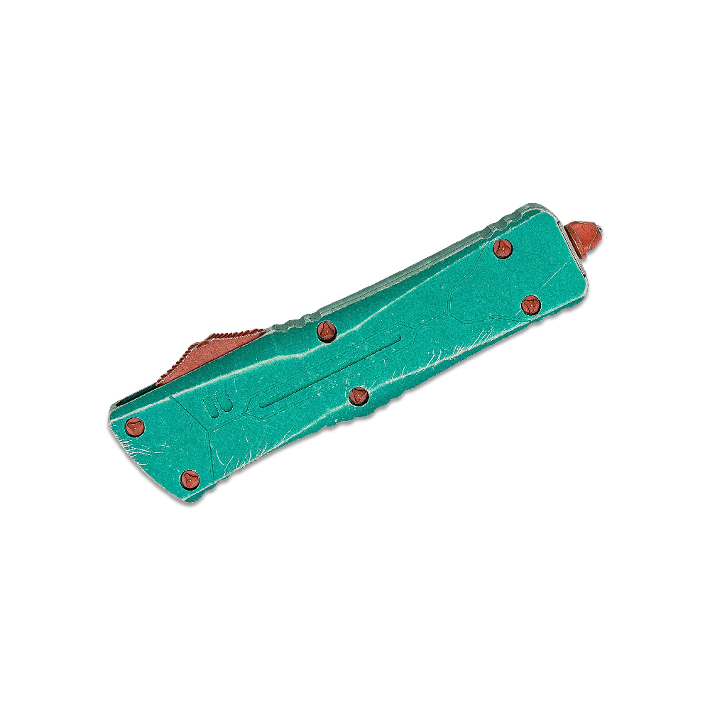 The Microtech 144-10BH Bounty Hunter Green Apocalyptic Combat Troodon is an advanced, tactical out-the-front (OTF) knife designed for a variety of applications, including combat and utility purposes. Built 25% larger than its predecessor, the Troodon, it combines a sleek, contoured design with a highly efficient internal mechanism for smooth operation. With the distinctive Bounty Hunter finish and a powerful glass-breaker tip, this knife is both practical and ready for action. Ideal for those who need a durable and reliable tactical tool, the Combat Troodon has earned its place as a top choice among OTF enthusiasts.