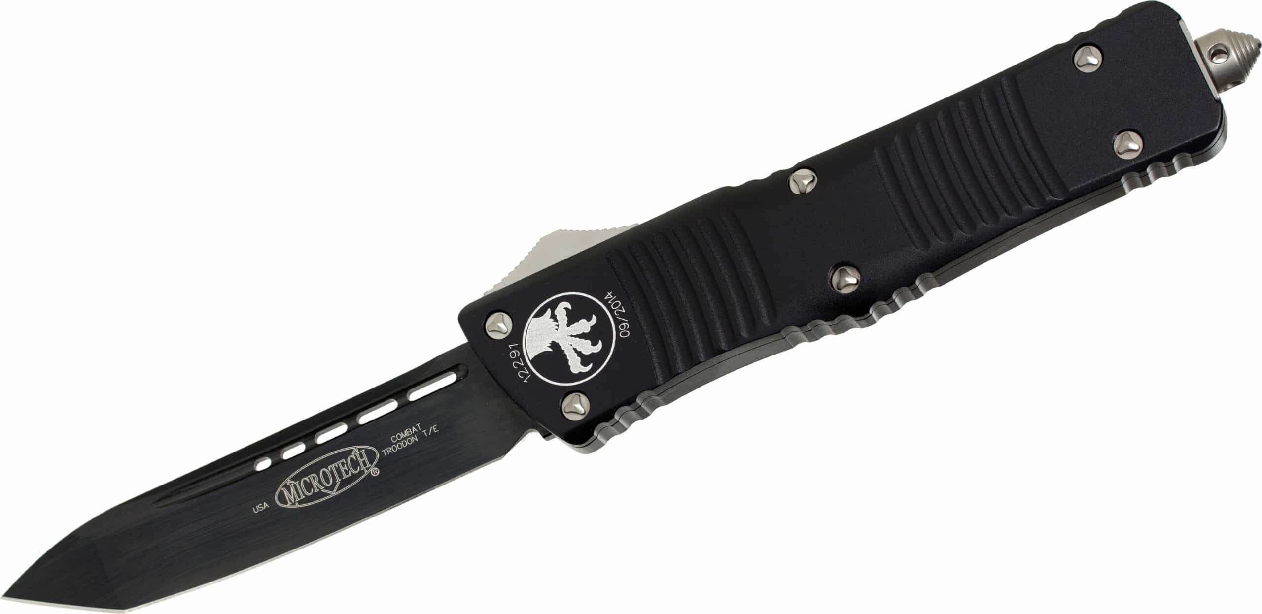 The MICROTECH 144-1T Combat Troodon is a precision-engineered OTF (out-the-front) automatic knife, designed for tactical operations and everyday utility. As a larger version of the Troodon, it features an ergonomic, contoured handle and a sophisticated internal mechanism for enhanced reliability and functionality. Built with high-quality materials and a rugged design, the Combat Troodon is ideal for both professional and personal use.