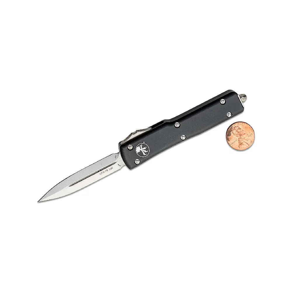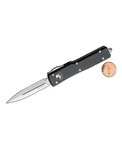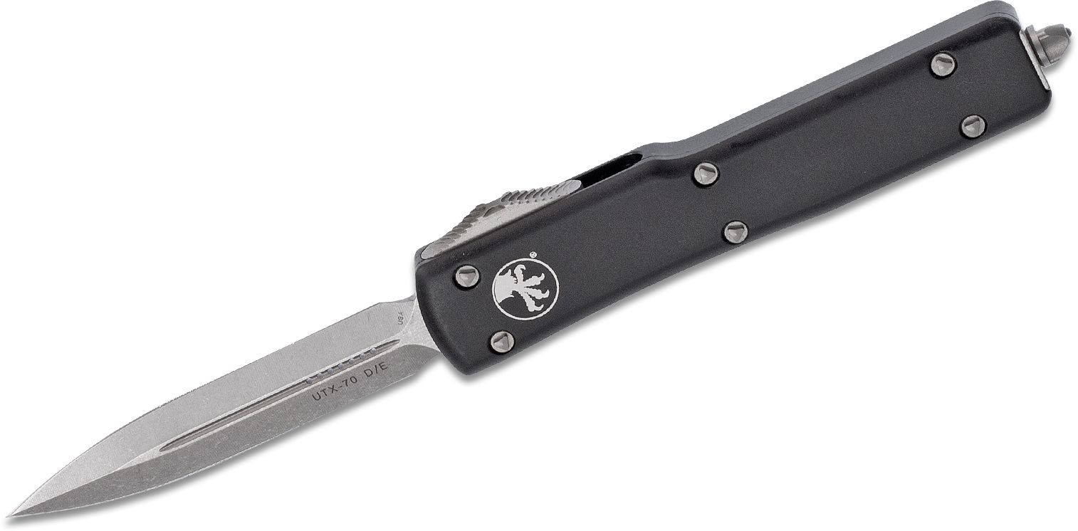 The MICROTECH 147-10 UTX-70 D/E is a compact yet powerful OTF (out-the-front) knife, designed for everyday carry and tactical use. At 70% the size of the Ultratech, this model retains the same high-quality materials and precision engineering as its predecessor. The UTX-70 features a stonewashed double-edge dagger blade, a lightweight anodized aluminum handle, and a smooth double-action automatic mechanism for rapid deployment and retraction. With its ergonomic design, ambidextrous pocket clip, and durable build, this knife is an excellent choice for those seeking high performance in a compact form.