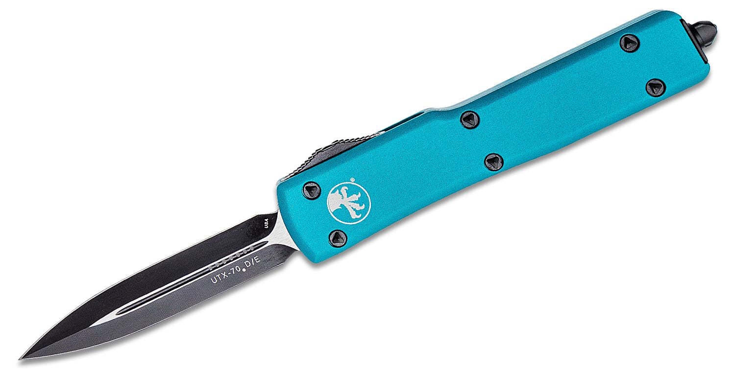 The MICROTECH 147-1TQ UTX-70 D/E is a compact yet high-performance out-the-front (OTF) knife, designed to provide the same durability and reliability as its larger counterpart, the Ultratech, but in a more pocket-friendly size. At 70% the size of the Ultratech, it offers quick one-handed deployment, precision cutting capability, and a sleek, lightweight design, making it the perfect everyday carry (EDC) tool.