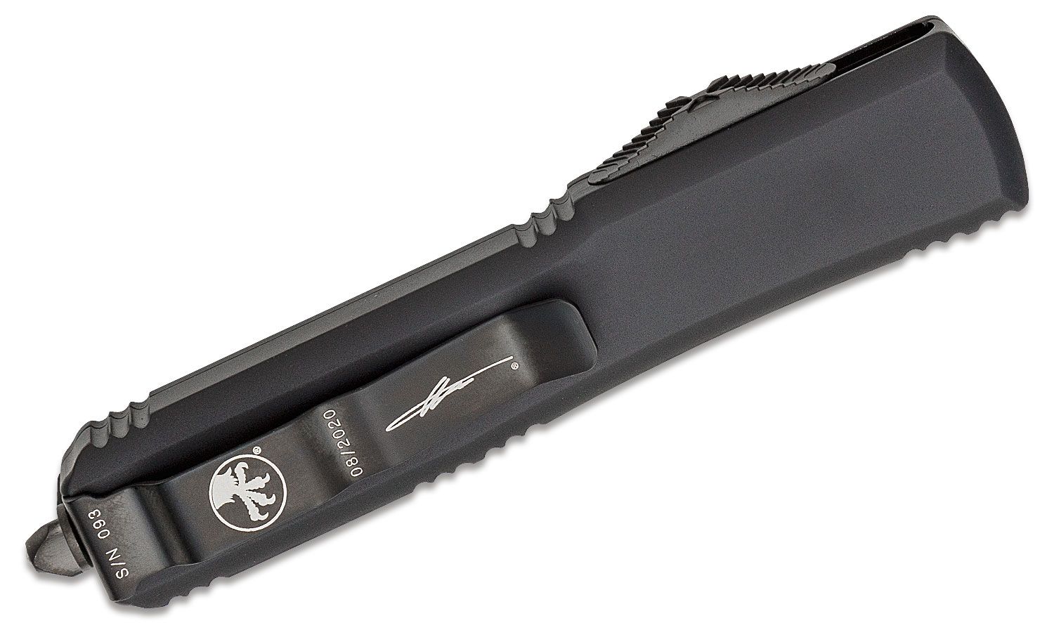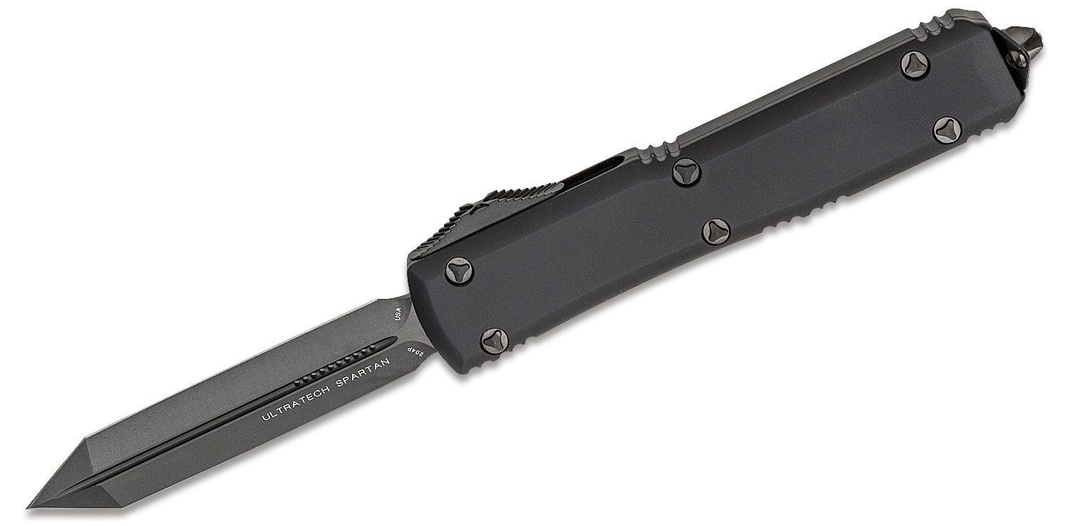 The MICROTECH 223-1DLCTS Spartan Black Standard is a premium dual-action out-the-front (OTF) knife, designed to deliver exceptional reliability and cutting power. As part of the Ultratech series, this 223-1DLCTS model maintains MICROTECH’s reputation for innovation, offering a contoured aluminum handle, textured thumb-slide, and a double-edge Spartan Tanto blade for superior versatility. The Ultratech’s spring remains at rest when not deployed, ensuring consistent performance and longevity. Whether for tactical, professional, or everyday use, this knife sets the gold standard for OTF knives.
