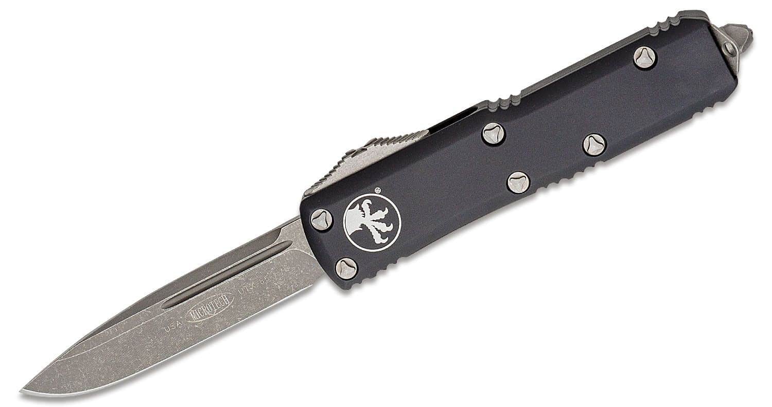 The Microtech UTX-85 OTF knife is the perfect combination of compact size and big performance. At 85% the size of the Ultratech, the Microtech UTX-85 is manufactured with the same materials, on the same machines and with the same ingenuity as its predecessor. The Microtech UTX-85 is the perfect knife for all situations–no matter what your cutting task; it will mesh seamlessly with your lifestyle. With its quick one-handed open and close action, it gets the job done in seconds. Equipped with an ambidextrous pocket clip and compact size, this is the perfect choice for everyday use and carry.