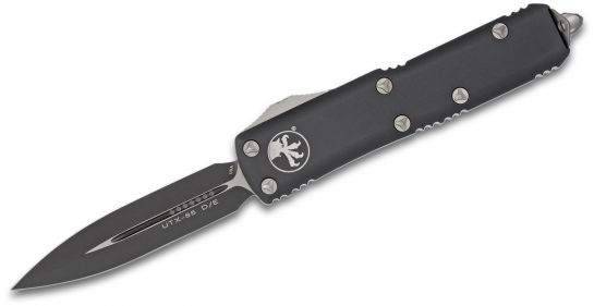 Microtech 232-1 UTX-85 AUTO OTF 3″ Black Double Edge Blade, Black Aluminum Handles Knife