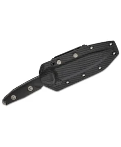 The black G10 handle provides a secure grip and ergonomic comfort, even in harsh environments. Measuring 5.0″ in length and 0.75″ in thickness, it delivers optimal control for extended use. The knife is accompanied by a carbon fiber finish Kydex sheath for secure carry and easy access.