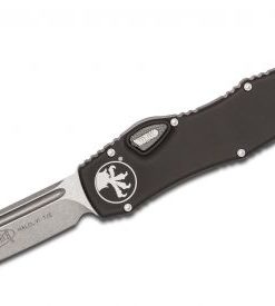 The Microtech Halo VI is a high-performance out-the-front (OTF) automatic knife, designed with precision and reliability in mind. This model features a stonewashed Tanto blade paired with a black Mil-Spec anodized alloy handle for durability and style.