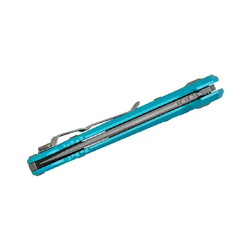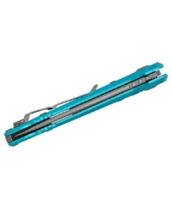Designed for elite performance, the LUDT Gen III features a stonewashed Bohler M390MK stainless steel blade with a crowned spine, reinforced tip, and blood groove/fuller for superior penetration and durability. The turquoise aluminum handle is enhanced with 3M Traction Tape for an exceptional grip, making this an ideal EDC knife.
