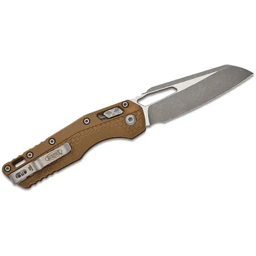 Released in 2023, the MSI (Microtech Standard Issue) is Microtech’s first knife to feature its revolutionary RAM-LOK technology. This innovative crossbar lock incorporates Microtech’s iconic step pattern, made famous by the Ultratech series actuation switches. The large blade cutout allows for reverse middle finger flicks or slow-roll thumb opening, even with gloves. Alternatively, pull down on the RAM-LOK for effortless blade deployment with a simple wrist flick.