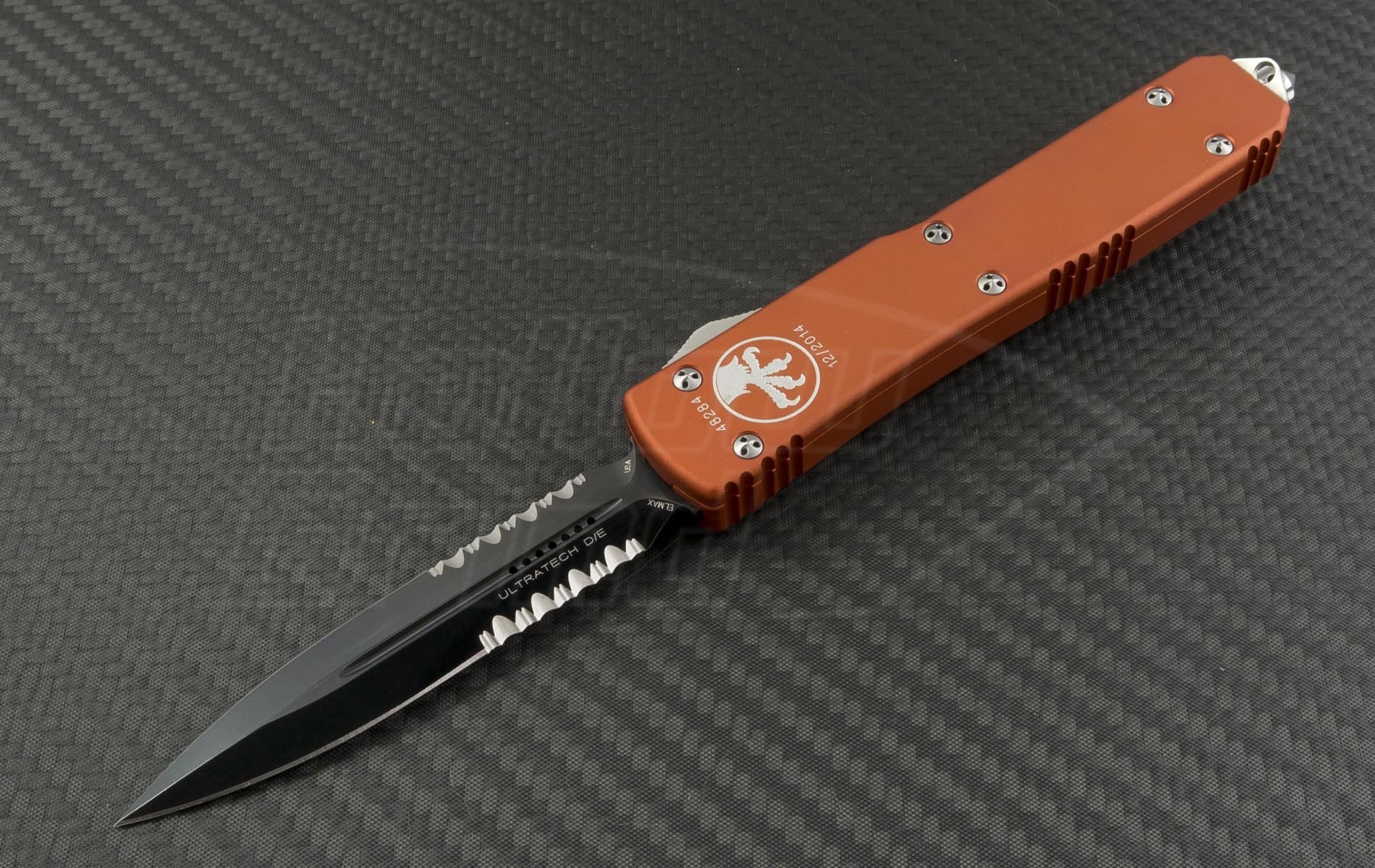 Microtech ultratech orange otf, part serrated blade, 122-2OR