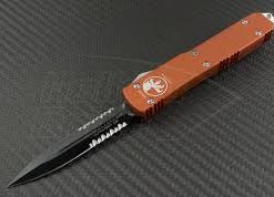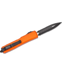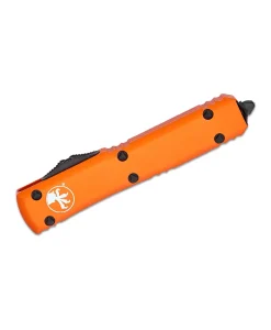 The Ultratech, the flagship knife of Microtech, has set the standard for out-the-front knives. This is their original, dual-action OTF knife and through the years has undergone several modifications. Each time, it has become more efficient and reliable. This model, the 122-2OR, features an orange anodized aluminum handle with all black hardware. The blade is dual-edged S35-VN with a black DLC coat with stainless highlights. There are partial serrations on both edges. The Ultratch’s spring remains “at rest” at all times except when deployed. This means the compressed spring does not become fatigued and assures you that the knife will fire with consistency and power. Get one today for your collection–or to carry.