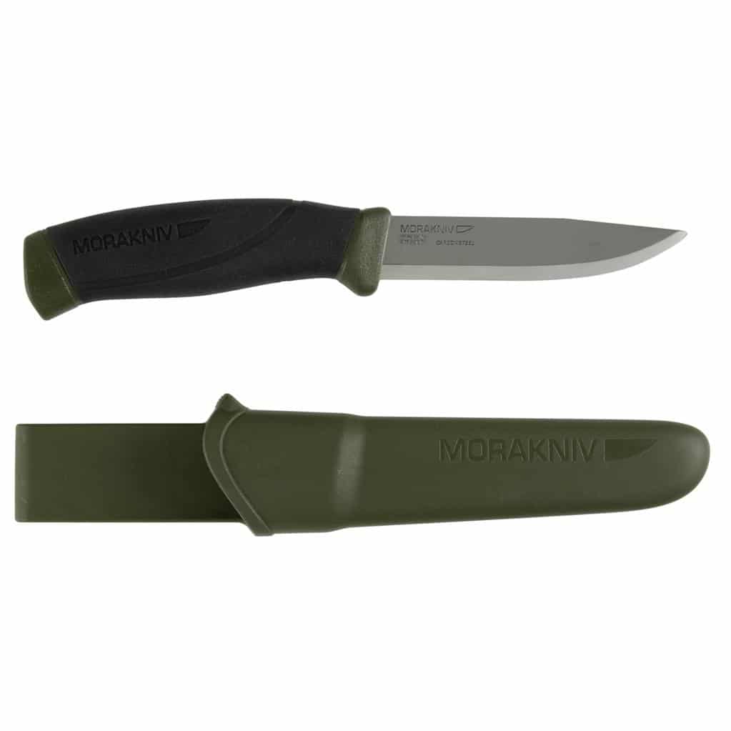 The Morakniv Companion MG is an all-in-one knife for outdoor enthusiasts with a patterned, high-friction grip that makes it comfortable to hold and easy to handle. The Companion MG features a 4.1-inch (104 mm) blade of 1095 carbon steel that reaches a hardness of HRC 58-60. High carbon steels are preferred in applications that demand durability and can be easily re-sharpened when needed. The Companion MG will perform well during high impact usage such as creating tinder or cutting wood. When used in wet applications, the blade should be dried after use to avoid blade corrosion and may exhibit a patina or natural discoloration over time through normal usage. You should also clean and oil your blade regularly especially after it comes in contact with acidic foods like oranges. Includes a military green sheath with belt clip. Overall length: 8.6 inch (218 mm); Blade length: 4.1 inches (104 mm); Blade thickness: 0.08 inch (2.0 mm); Weight w/ sheath: 3.9 oz. (110 g). Limited lifetime manufacturer’s warranty. Made in Sweden.