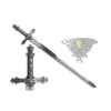The cast metal hand guard with antiqued silver finish bears the inscription or motto ‘Tanto Monta, Monta Tanto’, which appeared on the Spanish Royal Standard of the Catholic Kings from 1492-1506. The motto refers to both Catholic monarchs: Isabella and Ferdinand and loosely translates to: ‘As much as the one is worth, so much is the other’ meaning that both King and Queen held equal authority, also seen on the Spanish flags that Christopher Columbus brought to the New World.