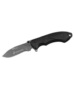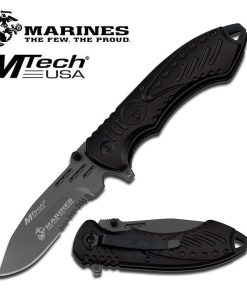 The MTECH M-A1030GS USMC Spring Assisted Knife is a rugged and reliable tactical knife, designed for quick deployment and superior functionality. Featuring a 3.5-inch, 4mm thick stainless steel blade with a grey titanium-coated half-serrated edge, this knife offers exceptional cutting power and durability. The ergonomically designed grey aluminum handle provides a secure and comfortable grip, making it an excellent choice for everyday carry, tactical use, and outdoor survival. With a spring-assisted opening mechanism and a pocket clip for convenient carry, this knife is built for efficiency and reliability.