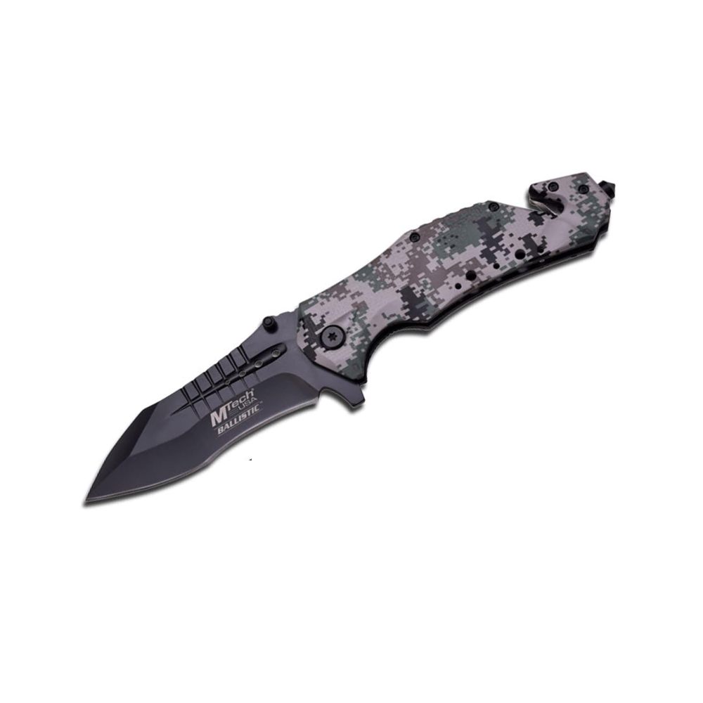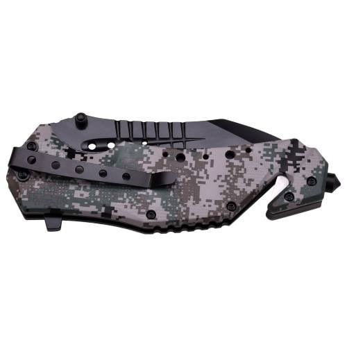The MTECH USA MT-A845DG Spring Assisted Knife is a versatile and durable tool designed for everyday carry and rescue situations. Featuring a 3.75-inch 3Cr13 stainless steel blade with a stonewash finish, this knife delivers sharp performance and corrosion resistance. The digital camo-coated aluminum handle offers a secure grip and a rugged tactical look. With a spring-assisted opening, liner lock mechanism, and thumb stud for quick deployment, this knife is ready for action. Additional features include a belt cutter and glass breaker, making it an ideal emergency tool.