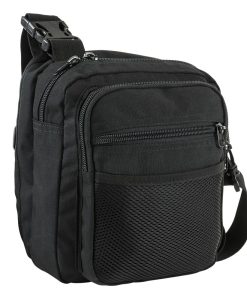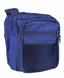 Satchel features an outside front mesh pocket and three separate 8″H X 6.0″W zippered compartments.
