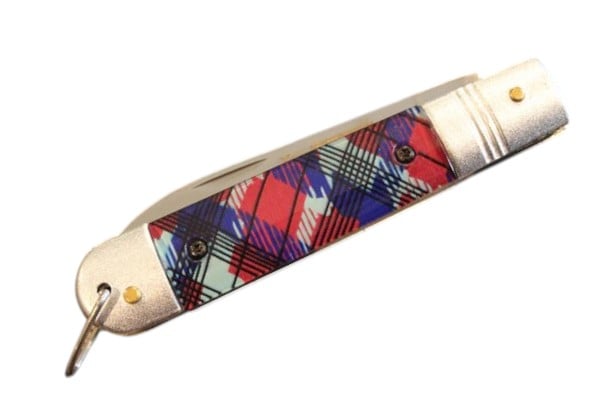 The Okapi tartan red knife FG02045 is a masterfully crafted cutting tool that blends durability, style, and tradition.