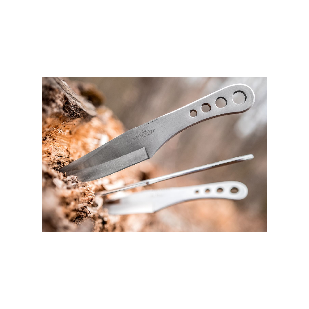 this thrower also doubles as a functional hunting knife.