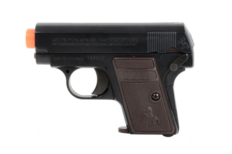 The Colt 25 Black Airsoft Pistol is a spring-powered gun that packs a punch in the field. This gun is a 1:1 replica of its real firearm counterpart, and is a great sidearm choice in the field. The features of this gun include: strong ABS construction, 15 Rd magazine, and a shot velocity of 150 fps. A joule rating of .12 makes this a fun and ideal gun for young airsoft enthusiasts. Recommended for use with .12g BBs.