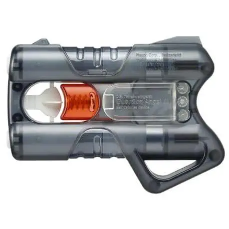 The GUARDIAN ANGEL® III is an extremely light (115 g). But nevertheless highly efficient repellent for self-defense purposes. Unlike conventional pepper sprays. A patented propulsion system ensures that the portable guardian angel operates reliably, every time, even under extreme weather conditions. Even in rain or strong headwinds, the irritant doesn’t fail to maintain its effectiveness and hits targets up to 4 meters away with pinpoint accuracy, thanks to an innovative spraying process. This little aid can be operated just as easily by either right-handed or left-handed users and can even be used by untrained people in an emergency.