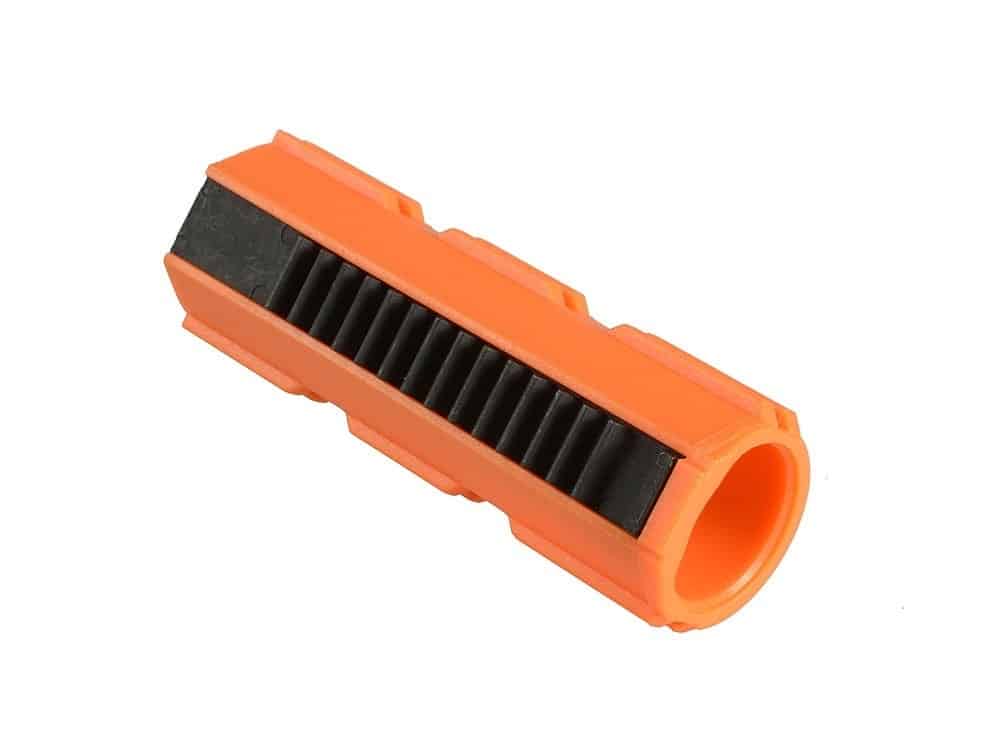 Constructed from state-of-the-art materials never before combined in airsoft components, the PX02 piston exemplifies innovation at its finest. Its unique blend of hardened polymers and solid metal teeth ensures exceptional strength without compromising flexibility. The metal teeth, produced through advanced Metal Injection Molding (MIM) processes, offer a perfect balance of durability and resilience, reducing the risk of breakage even under heavy use. This means consistent, reliable performance shot after shot, game after game.