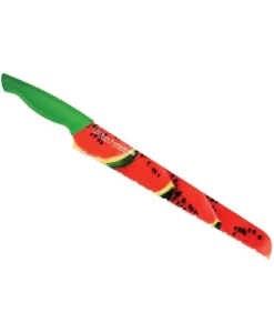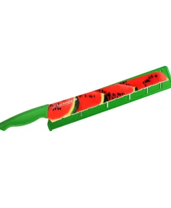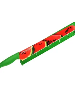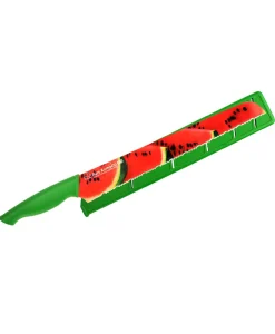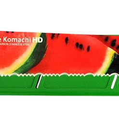 The Pure Komachi HD Melon Knife is part of the Pure Komachi HD series of knives that feature full-color, high-definition photography on razor-sharp, carbon stainless steel blades. This HD photographic coating looks spectacular and each blade has been double-coated for durability. The non-stick coating is food safe and easy to clean, too. Each knife comes with a color-matched sheath for safe and easy storage, too. These visually striking new knives will add color, fun, and brilliantly sharp cutting performance to your kitchen.