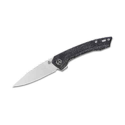 The QSP Leopard is a slimmed-down flipper knife with a predatory design aesthetic that brings to mind the similarly shaped Artisan Cutlery Archaeo. The near spear point blade profile makes for a generous cutting edge while maintaining a sharp piercing point. The blade itself deploys rapidly when utilizing the short flipper tab thanks to the ceramic ball bearings in the pivot. The opening action is smooth as butter and the knife secures with a satisfying snap thanks to the liner lock. The handle comes in several materials and colors including Micarta or G10 overlaid with carbon fiber.