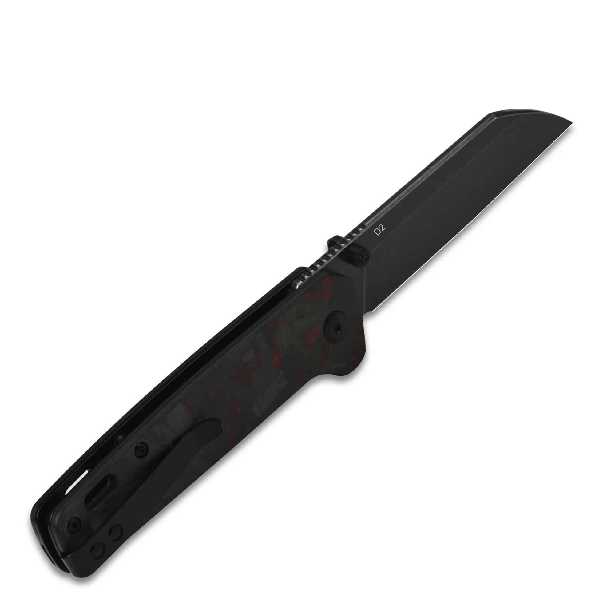 - Ergonomic Shredded CF Overlay G10 Handle: secure, stylish grip