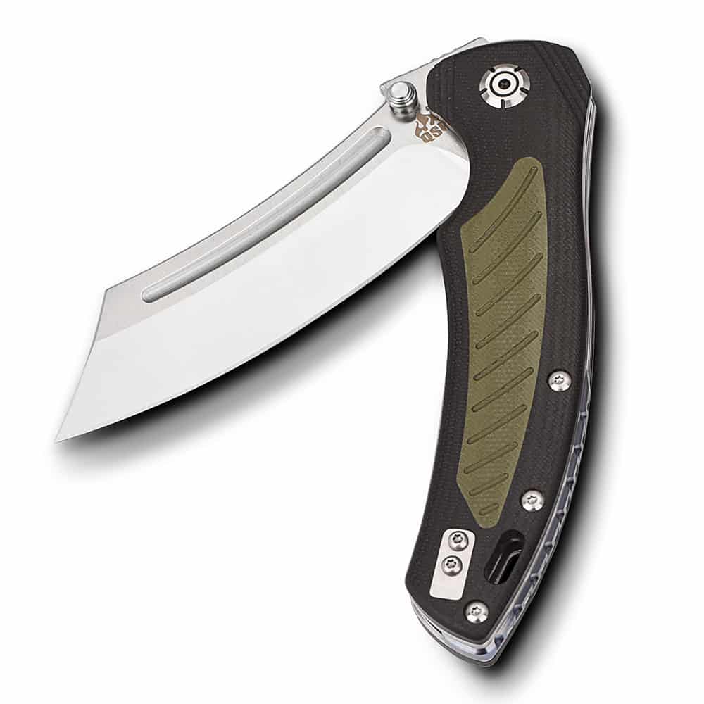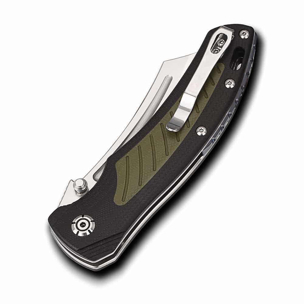 - Handle: Green/black G10 inlay – ergonomic grip with eye-catching style