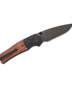 The handle is a study in comfort and durability. Smooth tan Micarta scales are paired with contrasting black-anodized aluminum bolsters for a grip that feels as good as it looks. The gently contoured shape fills your palm, providing secure control even during extended use. Textured Micarta ensures a confident hold, while the aluminum accents add a dash of modern flair.