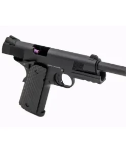 The Raven MEU Railed Black Airsoft Pistol 6mm – RGP-02-07 is a robust and versatile semi-auto sidearm inspired by the classic MEU design. Built with high-impact polymer (HIPS) and aluminum components, it offers realistic weight and feel. A 20mm under-barrel rail allows for tactical attachments, while the 6.03 mm precision inner barrel ensures improved accuracy.