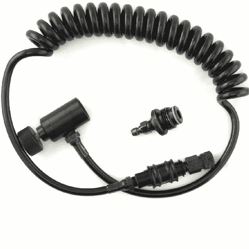 “Get that bulky tank off your paintball gun with a coiled remote! Unlike Steel braided hoses, the coil will expand and contract to fit whatever position you are in! This remote hose system allows maximum comfort and mobility when in use and is ideal to have when using a stock or a marker butt.