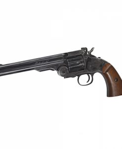 The Schofield revolver is a part of the history of firearms. A weapon powered by 12-gram CO2 capsules that is an ultra realistic replica of the famous revolver used by many of the great gunmen of the Old West. The fictitious cartridges, each for a single projectile, are loaded into this top-opening revolver that works the same as the real weapon, including the ejector that ejects the used cartridges to allow a quick reload.The aged and scraped black version, with wooden imitation handle. Led by the hardened gunman. Both can shoot steel BBs or lead shot depending on the cartridges used.
