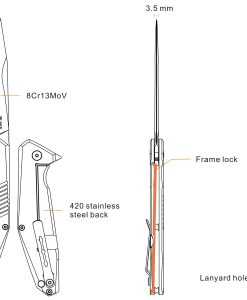Overall Length: 219 mm / 8.62″ Weight: 120 g / 4.23 oz Blade Length: 92 mm / 3.62″ Blade Thickness: 3.5 mm / 0.14″ Blade Material: 8Cr13MoV stainless steel Finish: Stonewash Handle Material: Black G10 front w/ 420 stainless steel liner & 420 stainless steel back Bearing / washer: Roller bearing washer Opening: (Manual) Flipper Locking: Frame lock The Ruike D191 features 8Cr13MoV blade steel with skid proof G10 front scale and stainless steel back. This lightweight knife also feature roller bearing for a smooth blade deployment at a budget folder price.