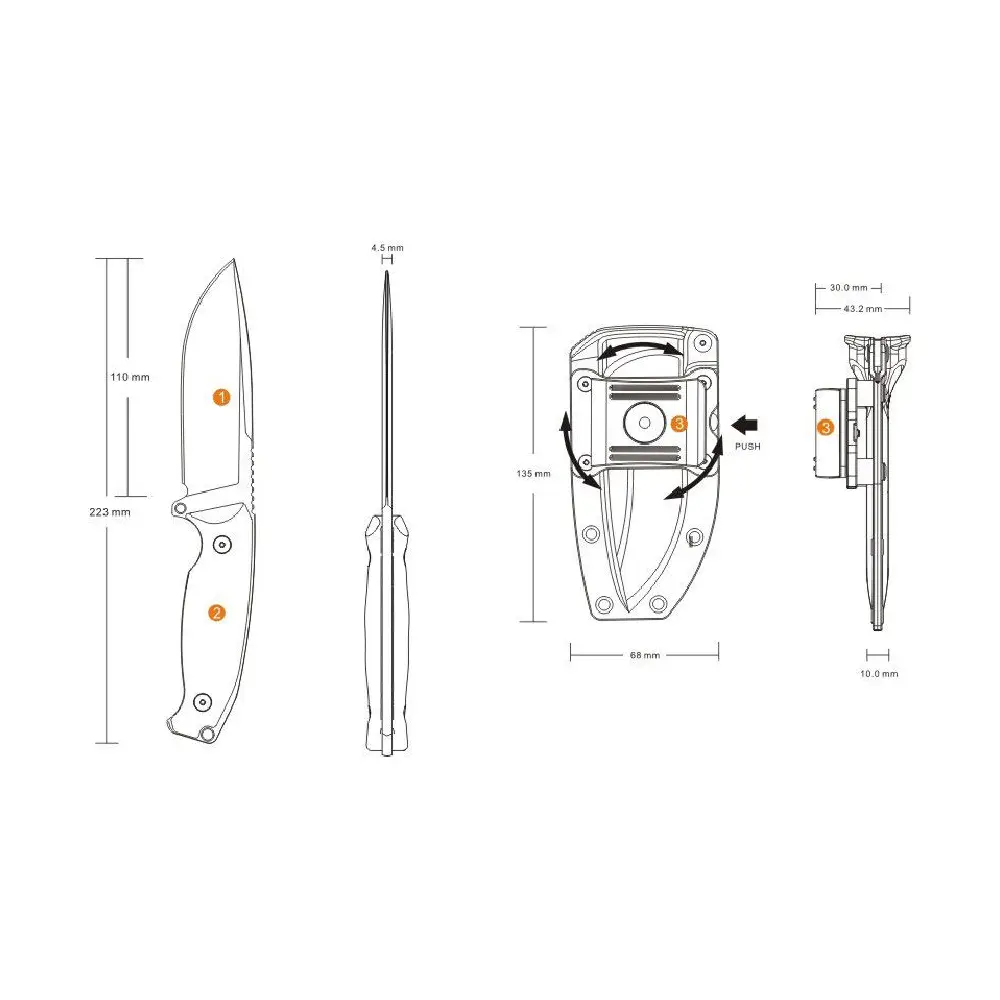 Sheath Material: Black ABS Plastic with Belt Clip Attachment