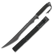 This Secret Agent tactical sword is one awesome piece of steel! The sleek full tang design measures 27″ overall with a heat-treated black baked finish. The blade features fantasy cut outs, teeth like serrations, and a piercing point, and slides smoothly into the included nylon blade sheath. The nylon cord wrapped handle adds a sure grip for easy maneuverability. If there is a sword that screams to be picked up, this one is it! Full tang blade for strength while cutting Cord wrapped handle adds grip and comfort Includes durable nylon sheath