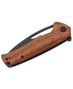 What truly sets the Mims apart is its handle. Guibourtia wood scales are meticulously shaped to provide both a slim carry profile and rock-solid control. A deep finger groove, textured jimping on the spine, and slim but sturdy liners work in concert to lock the knife into your hand, even when your grip is slick or you’re wearing gloves. And at just 3.6 ounces, you might forget it’s there – until you need it.