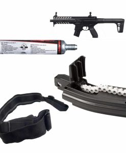 Train like the pros! The Sig Sauer MPX is a near exact copy of the firearm used by law enforcement and also military units around the globe. With similar weight, feel, and controls these also make a great way to bring the practice range home. These compact semi-auto rifles feature also adjustable flip up sights, Picatinny top and side rails, and a 30 round magazine. Available in .177 , this rifle are ready for action.