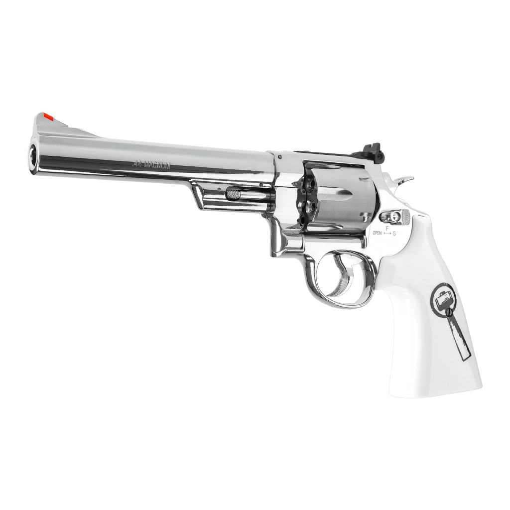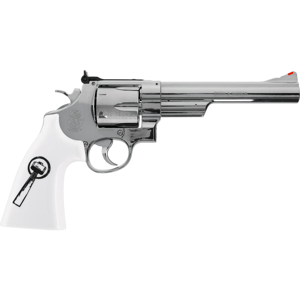 The Smith & Wesson 629 “Trust Me” CO₂ Airgun Revolver is a striking tribute to a legendary revolver design, combining timeless aesthetics with modern airgun performance. Finished in elegant nickel plating and fitted with ivory-style grip plates, this special edition stands out as both a collector’s piece and a functional air pistol.